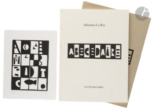 LE ROY (Sébastien). — Abécédaire. — Gravures originales. Les Paroles Gelées. Paris. 2014. In-folio (37 x 27,5 cm). (56) pp., (1) f. de justification : relié à la japonaise, couvertures rempliées de fort papier d’Arches, titre...