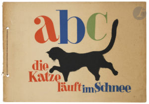 LEISTIKOW (Hans). — ABC die Katze läuft im Schnee. [ABC le chat court dans la neige]. — Das ABC zeichnete Hans Leistikow. Verlag Eduard Stichnote in Potsdam. [1947]. In-8 oblong (17 x 24,5 cm). (27) ff., imprimés en recto : couvertures de...