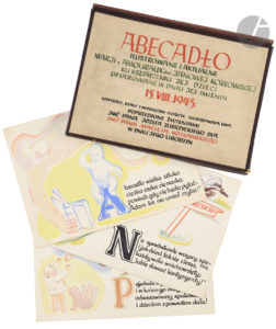 Unique abécédaire polonais entièrement calligraphié à l’encre et illustré de larges gouaches colorées réalisé à l’apogée de la présence allemande à Cracovie.