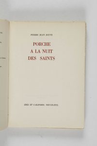 JOUVE Pierre Jean.Porche à la nuit des saints. Neuchâtel, Ides et calendes (1941). In-8, br. Édition originale. 1/727 sur vergé.Joint :- Gloire. Alger, Charlot, 1942. In-8, br. Édition originale. 1/600 pur fil Saint Marcel.