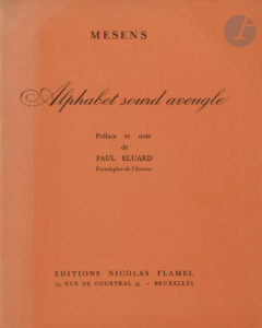 MESENS (Edouard Léon Théodore). ELUARD (Paul). — Alphabet sourd aveugle. — Préface et note de Paul Eluard. Frontispice de l’auteur. Éditions Nicolas Flamel. Bruxelles. Imprimerie F. Van Buggenhoudt. Bruxelles. [1933]. In-4...