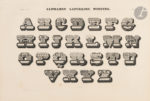 Planches numérotées sous serpentes dans les trois ouvrages. Le premier recense les écritures orientales et occidentales. Le second volume est une réunion de compositions mêlant entrelacs, dessins, lettres et textes. De nombreuses planches sont consacrées à Napoléon, à la religion et aux écrivains. Le dernier comprend alphabets et modèles de textes dans les différentes écritures citées dans le titre, abécédaires illustrés, lettres “midollines”, alphabets fantaisie, chiffres divers, et se termine avec l’Alphabet diabolique.