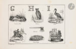 Titre et neuf planches de trois initiales chacune avec deux occurrences illustrées (pas de W et une seule planche pour le Z orné de six occurrences). Illustrations diverses d’animaux, de personnages et d’objets, finement gravées, sous les trois initiales majuscules placées en tête de la gravure. Toutes les planches (sauf le titre) sont signées Dd Monnier. Entre les planches, sont intercalées des pages d’exercices de lecture définissant les gravures. L’ouvrage débute par des alphabets de lettres allégoriques et en divers caractères, chiffres, voyelles, consonnes, lettres doubles, syllabes et mots syllabés.