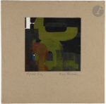 (25 x 25 cm) de papier fort, de (55) volets, imprimé sur une face. Rubans d’attache de coton noir.