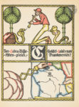 Deux illustrations en couleurs par planche, imprimées en recto, séparées par deux vers en écriture gothique, initiale au centre, encadrements ornés jaunes et noirs. Beau graphisme [et texte] par le peintre, illustrateur et homme politique nazi, Emil Stahl (Nuremberg 1882- 1941 Berlin ?). Après ses études à l’Académie de Munich, il est nommé Kunstgauführer, à partir de 1933. Directeur des collections d’art municipales de Nuremberg.