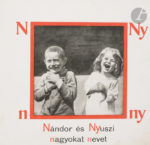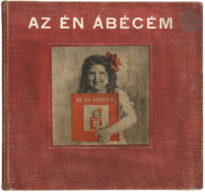 Préface de l’auteur, suivie d’une page de rimes, débutant par les lettres de l’alphabet, signée par le journaliste et écrivain hongrois Elek Benedek. Tous les feuillets imprimés en recto sur le même modèle, illustration centrale avec un encadrement rouge et initiales et minuscules aux angles, ou même lettre avec ses accentuations. Alphabet des prénoms montrant uniquement des enfants dans leurs activités. De A, Anna et Ádámnak à Xavér et Yvonne.