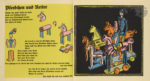 Couverture, page de titre et onze planches sur fond noir figurant les jouets de bois taillé aux coloris éclatants : rose, orange, bleu turquoise, jaune. Sur les pages en regard, lithographiées sur fond jaune vif, et également animées de petites compositions colorées, la typographie (Sebaldus-Gotisch de la fonderie Berthold à Berlin) fait écho à la taille brute des jouets.