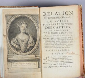 [AFRIQUE du NORD - GODEFROY (Père), COMELIN (François) & La MOTTE (Philémon de)]. Etat des Royaumes de Barbarie, Tripoly, Tunis, et Alger : contenant l'Histoire naturelle & politique de ces Païs. La Maniere dont les Turcs y traitent les esclaves. Comme on les rachete. Et diverses avantures curieuses. A Rouen, Chez Guillaume, Behourt, 1703. In-12, veau, dos à nerfs orné (reliure de l'époque). ÉDITION ORIGINALE. Quelques rousseurs ; frontispice en déficit. JOINT : La FAYE (Jean de), MACKAR (Denis), ARCISAS (Augustin d') & Le ROY (Henry). Relation en forme de journal, du voiage pour la redemption des captifs, aux roiaumes de Maroc & d'Alger. Pendant les années 1723, 1724 & 1725. A Paris, Chez Louis Sevestre & Pierre-François Giffart, 1726. In-12, demi-veau, dos à nerfs orné (reliure pastiche). ÉDITION ORIGINALE. Un portrait en frontispice et une planche gravée repliée. Légères rousseurs. JOINT : • COMELIN (François), La MOTTE (Philémon de) & BERNARD (Joseph). Voyage pour la rédemption des captifs, aux royaumes d'Alger et de Tunis. Fait en 1720. •• La Tradition de l'Eglise dans le soulagement ou le rachat des esclaves. A Rouen, Chez Pierre Machuel, 1731. 2 ouvrages en un volume in-12, veau, dos à nerfs orné (reliure pastiche). • « Seconde édition. » Un portrait de Louis XV en frontispice et une planche gravée repliée. Ex-libris manuscrit caviardé au dos du frontispice. •• Un frontispice gravé. Légères rousseurs. ENSEMBLE TROIS VOLUMES.