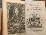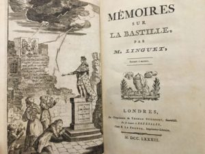 [BASTILLE]. Réunion d'ouvrages sur la Bastille, en volumes in-8° ou in-12, veau ou basane. • [ANONYME]. Remarques historiques sur la Bastille ; sa démolition, & Révolution de Paris, en Juillet 1789. Londres, 1789 (un plan replié) ; • [CARRA]. Mémoires historiques [...] sur la Bastille [...]. Londres, 1789 (3 vol. ; frontispice) ; • [CHARPENTIER]. La Bastille dévoilée [...]. Paris, 1789 (2 vol. ; un grand plan replié) ; • CONSTANTIN de RENNEVILLE. L'Inquisition françoise ou l'Histoire de la Bastille. Amsterdam, 1719 (2 vol. ; planches) ; • [LATUDE - BEAUPOIL de SAINT-AULAIRE]. Histoire d'une détention de trente-neuf ans, dans les prisons d'État. Écrite par le Prisonnier lui-même. Amsterdam, 1787 (É. O.) ; • [LINGUET]. Mémoires sur la Bastille et sur la détention de M. Linguet. Londres, 1783 (frontispice). Joint : Le PRÉVÔT de BEAUMONT. Le Prisonnier d'État, ou Tableau historique de la captivité de J. C. G. le Prévôt de Beaumont, durant vingt-deux ans deux mois. Paris, 1791. ENSEMBLE ONZE VOLUMES.