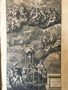 GIRALDI (Lilio Gregorio Gyraldi, alias). Opera omnia dvobvs tomis distincta [...]. Lugdunum Batavorum [Leyde], Apud Hackium, Boustesteyn, Vivie, Vander Aa & Luchtmans, 1696. 2 tomes en un volume in-folio, vélin ivoire, double encadrement de filets dorés à la Duseuil ornant les plats, larges armoiries au centre, dos à nerfs orné, traces de lacs (reliure de l'époque). Deuxième édition. Texte sur deux colonnes. Un titre-frontispice et neuf autres planches allégoriques gravées sur cuivre par AREELE d'après BOITARD (dont deux métalliques doubles) et une vignette dans le texte ; lettrines ornées et culs-de-lampe. De la bibliothèque Majolier, avec ex-libris. Rousseurs. EXEMPLAIRE aux ARMES CLERMONT-TONNERRE de cette « bonne édition » (Brunet, II, 1839).
