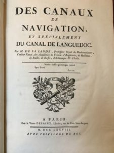 [HYDRAULIQUE]. La LANDE (M. de). Des canaux de navigation, et spécialement du Canal de Languedoc. …