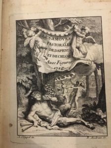 [LONGUS]. Les Amours pastorales de Daphnis et Chloé. Traduction par Jacques Amyot et notes par Antoine Lancelot. S. l. [Paris], 1745. Grand in-12, maroquin rouge, filets et large dentelle dorée aux petits fers « à l'oiseau » encadrant les plats, dos lisse orné, pièce de titre en maroquin vert, tranches dorées (reliure de l'époque). Un titre-frontispice gravé par Benoît AUDRAN d'après Antoine COYPEL (daté de 1718) et 29 figures hors texte, dont 28 par AUDRAN d'après Philippus (alias PHILIPPE d'ORLÉANS), et une (la dernière dite « aux petits pieds »). Cohen, 652 (avec les « mêmes figures que celles de l'édition de 1718 »). Édition ornée des mêmes figures que celle de 1718, dont la date subsiste sur le frontispice. Maroquin légèrement terni ; coiffe de tête frottée ; feuillets légèrement roussis et rousseurs et accident restauré sur les trois derniers feuillets, mais EXEMPLAIRE en MAROQUIN à DENTELLE decette édition illustrée par le Régent. Cohen, 652 (avec les « mêmes figures que celles de l'édition de 1718 »).