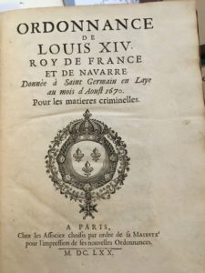 [LOUIS XIV/ORDONNANCE CRIMINELLE]. Ordonnance de Louis XIV. Roy de France et de Navarre. Donnée à Saint Germain en Laye au mois d'Aoust 1670. Pour les matieres criminelles. A Paris, Chez les Associez, 1670. In-4°, veau moucheté, dos à nerfs orné de fleurs de lys (reliure de l'époque). Restaurations à la reliure ; coiffes frottées.
