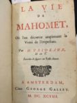 PRIDEAUX (Humphrey). La Vie de Mahomet, où l'on découvre amplement la verité de l'imposture. A Amsterdam, Chez George Gallet, 1698. In-12, veau marbré glacé, dos lisse orné (reliure mi-XVIIIe s.). Premièretraduction françaisede l'édition originale anglaise parue la même année. Neuf figures hors texte gravées en taille-douce. Brunet, VI, 28001 ; Hage Chahine, 3859. JOINT : [ANONYME]. Avantures merveilleuses et galantes de Mahomet [...] Histoire secrette. A La Mecque, 1761. In-12, veau, dos à nerfs orné (reliure de l'époque). Un titre orné gravé. ENSEMBLE DEUX VOLUMES.