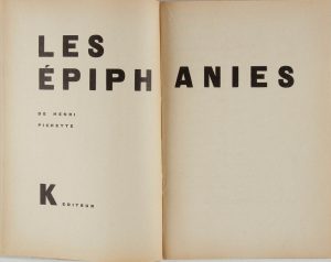 PICHETTE Henri.Les épiphanies. Paris, K éditeur, 1948. In-8, br.Ed. originale sur papier d’édition.Joint :- Nucléa. Paris, L’Arche, 1952. In-12, br.