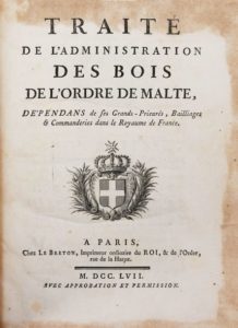 [Malte]. TRAITE DE L'ADMINISTRATION DES BOIS DE L'ORDRE DE MALTE dépendans de ses …