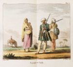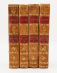 [Voyage - Marine]. [LANGLES (Louis Mathieu.)]. Voyages de la Perse dans l'Inde, et du Bengal en Perse, avec une notice sur les Révolutions de la Perse, un mémoire historique sur Persepolis et des notes. Le premier traduit du persan, le second de l'anglais. Paris, de l'imprimerie Crapelet, An VI. 2 volumes petit in-12 de 131-[4]-142 et [2]-268-6 pages, veau marbré, dos lisse orné de fers spéciaux dorés, tranches jaunes (reliure de l'époque). Divisé en 3 parties : La première : Voyage de la Perse dans l'Inde, par A'bd-oûlrizaq; la seconde : Voyage du Bengal à Chyraz, par William Franklin. La dernière par L. Langlès, offre un mémoire historique sur Persepolis composé d'après différents manuscrits arabes, turcs et persans. Orné de 4 fines planches en couleurs par Hilair gravées par Copia dont 2 frontispices et 2 à double page. Catalogue des ouvrages de l'auteur relié in fine. On joint dans des reliures identiques : HODGES (William). Voyage pittoresque de l'inde, fait dans les années 1780-1783, traduit de l'anglais et augmenté de notes géographiques, historiques et politiques par L. Langlès. Paris, de l'imprimerie de Delance, An XIII-1805. 2 volumes de 27-[1]-222 et [2]-252 pages. Orné de 14 belles planches en couleurs par Hodges et gravées par Simon, dont 13 à double page et 1 repliée. ENSEMBLE DE 4 VOLUMES. Reliures un peu frottées, 3 coiffes usées, très rares rousseurs. (Brunet III, 820).