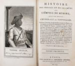 [Voyage - Marine]. MICHAUD (Joseph). Histoire des progrès et de la chute de l'empire de Mysore sous les règnes d'Hyder-Aly et Tippoo-Saïb. Paris, chez Giguet, 1801. 2 volumes in-8, basane marbrée, dos lisses ornés (reliure de l'époque). EDITION ORIGINALE détaillant l'historique des guerres des souverains de Mysore avec les anglais, une esquisse de la conquête de l'Egypte et les lettres de Bonaparte au sultan Tippoo. Elle est illustrée d'un portrait du sultan, de 2 plans de batailles, d'une planche et de 2 cartes dont une aux contours coloriés. Petits accidents aux reliures, rousseurs éparses. (Chadenat, 1934).