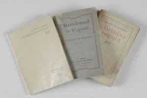 ROLLAND de RENEVILLE A.Rimbaud le voyant. Paris, Au Sans Pareil, 1929. Pt in-8, br. Petits manques à la couv., papier bruni.Joints :- L’expérience poétique. Paris, Gallimard, 1938. Pt in-8, br.- La nuit, L’esprit. Paris, Gallimard, 1946. Pt...