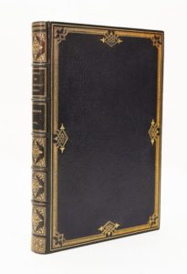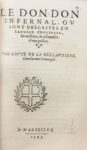 BELLAUD DE LA BELLAUDIERE (Louis). Obros et Rimos provenssalos de loys de la Bellaudiero, gentilhomme Prouvenssau, Reviovdados per Pierre Paul Escuyer de Marseillos. Dedicados as vertouzes et generouzes seignours, Louys d'Aix, et Charles de Casaulx, viguier et premier conssou, capitanis de duos galeros, et gouvernadours de l'antiquo cioutat de Marseillo [suivi de]. Le Don-don infernal ou sont descrites en langue provençale les misères & calamitez d'une prison. [suivi de] Louspassatens (…) [suivi de] Barbouillado et phantazie journalieros de Pierre Pau, escuyer de Marseillo. Marseille, Pierre Mascaron, 1595. 4 parties en 1 volume in-4° de 180-130-[10]-68 pages, maroquin bleu marine, dentelle dorée avec motifs triangulaires sur les plats, dos à nerfs orné, tranches dorée (Niédrée). Ouvrage d'une grande rareté, surtout complet comme celui-ci. C'est la première édition collective des oeuvres de Louis Bellaud, en grande partie originale et LE PREMIER LIVRE IMPRIME A MARSEILLE. Écrite en provençal lors de son emprisonnement à Moulins après la Saint-Barthélemy, l'oeuvre de Louis Bellaud, soldat-poète parfois décrit comme un « soudard », fut publiée de façon posthume par son oncle par alliance et ami de Pierre Pau, auteur de La Barbouillado qui constitue la dernière partie de cet ouvrage. Exemplaire à grandes marges illustré de 2 portraits identiques de l'auteur. La seconde partie commence à la page 153 et possède son propre titre daté dont la première partie contient en pagination continue le livre intitulé « Le Don-don ». Très bel exemplaire entièrement lavé. (USTC 21303 - Brunet I, 744-45-46). Provenance : Bibliothèque P. Desq (ex-libris, n°612 de son cat.).