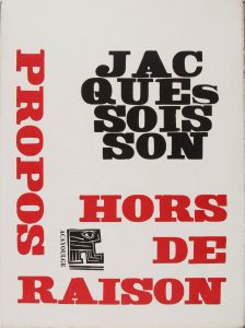 SOISSON Jacques.Propos hors de raison. Acayoulge (Paris, l’auteur 1982). Gd in-folio en ff. Tirage à 49 ex. 1/40 sur arches, justifié et signé. Superbe réalisation imprimée sur les presses de Michel Bon.