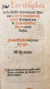 BOUCHET (Jean). Les Triumphes de la noble et amoureuse dame, et l'Art de honnestement aymer, …