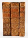 [BRIANSON (Robert de)]. L'Etat de la Provence, contenant ce qu'il y a de plus remarquable dans la Police, dans la Justice, dans l'Eglise et dans la Noblesse de cette province, avec les armes de chaque famille. Par M. l'Abbé R.D.B. Paris, Auboin, Emery, Clousier, 1693. 3 volumes in-12, basane fauve, dos à nerfs ornés, tranches rouges (reliure de l'époque). Rare contrefaçon avec l'intitulé de chaque page en italique au lieu d'être en petites capitales. Elle est illustrée de 26 planches d'armoiries hors-texte. Restaurations aux reliures. (Barbier II, 295).