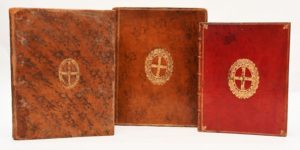 EDIT DU ROI portant règlement pour la Ville et Communauté de Marseille, donné à Paris au mois de Mars 1717. Marseille, Sibié, 1772. In-4° de 119 pages, basane blonde, filets dorés, armes de la ville de Marseille sur les plats, dos lisse orné (reliure de l'époque). Cachet de Rémusat avec sa devise « Boute et ne doute ». On joint un exemplaire identique, sans le cachet de Rémusat. On joint : EDIT DU ROI portant règlement pour la Ville et Communauté de Marseille, donné à Paris au mois de Mars 1717. Marseille, Pierre Penot, 1717. In-4° de 39 pages, maroquin rouge aux armes de la ville de Marseille. ENSEMBLE 3 VOLUMES.