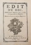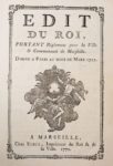 EDIT DU ROI portant règlement pour la Ville et Communauté de Marseille, donné à Paris au mois …