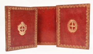 EXERCICE DE PHYSIQUE - EXERCICE DE MECHANIQUE dédié à Messire André-Paul de Louvicou. Marseille, de l'imprimerie de Sibié, imprimeur du Roi, de la ville et du Collège, 1782. 2 parties de 20 et 26 pages en 1 vol. in-4°, maroquin rouge, large encadrement sur les plats ornés des armes de Marseille, dos lisse richement orné, tr. dorées (reliure de l'époque). On joint : EXERCICE DE MECHANIQUE dédié à Messieurs les Echevin et députés de la Chambre de Commerce. Marseille, de l'imprimerie de Sibié, imprimeur du Roi, de la ville et du Collège, 1782. In-4° de 26 pages, maroquin rouge, large dentelle dorée sur les plats, dos très orné (reliure de l'époque). Petites taches sur les plats. On joint : EXERCICE DE MATHEMATIQUE ET DE PHYSIQUE dédié à Messire Jean-François Le Maistre. Marseille, de l'imprimerie de Sibié, 1770. In-4° de 15 pages, maroquin rouge, dentelle dorée, armes de Marseille sur les plats (reliure de l'époque). ENSEMBLE DE 3 VOLUMES.
