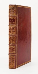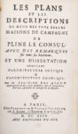 FÉLIBIEN DES AVAUX (J.-Fr.). Les Plans et les descriptions des deux plus belles maisons de campagne de Pline le Consul avec des remarques sur tous ses batimens. Paris, Fl. et P. Delaulne, 1699. In-12 de [12]-189-[21] pages, maroquin vieux rouge, triple filet doré sur les plats, dos à nerfs orné, tranches dorées sur marbrure (reliure de l'époque). EDITION ORIGINALE accompagnée d'une petite dissertation touchant l'architecture antique et l'architecture gothique illustrée de 7 planches dont 5 dépliantes. C'est une traduction des textes écrits par Pline au sujet des bâtiments qu'il avait lui-même fait construire, notamment sur ses deux maisons de campagne, Le Laurentin et La Maison de Toscane. Provenance : Ex-libris armorié de l'auteur collé au verso du titre. Bel exemplaire.