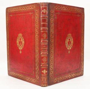 FONTENELLE. Entretiens sur la pluralité des Mondes. Paris, Vve. Defer de Maisonneuve, 1796. In-4°, maroquin rouge, larges encadrements dorés sur les plats avec armes dorées au centre, dos à nerfs orné, tranches dorées (reliure de l'époque). Très belle impression sur grand papier avec les grands caractères de Didot le jeune. Exemplaire à grandes marges aux armes de Louis-Henri-Joseph de Bourbon, Duc de Bourbon et prince de Condé (1756-1830), père du duc d'Enghien. Dos et charnières restaurés. Provenance : Duc de Bourbon et Prince de Condé.
