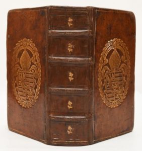 LYCOSTHENES (Conrad). Apophtegmata ex probatis graecae latinaeque linguae scriptores. Cologne, Lazare Zetzner, 1611. Fort in-8, veau blond, armes dorées au centre des plats, dos à nerfs orné (reliure de l'époque). Important recueil d'apophtegmes recueillis des auteurs anciens grecs et latins accompagné d'un portrait sur bois et d'une table des matières. A la suite à la même date et chez le même éditeur : Parabolarum sive similitudinum. Rousseurs nombreuses. O.H.R. indique « les armes de cet abbé ne sont connues que par une reliure. ». (O.H.R. pl. 613). Dos restauré. Provenance : Exemplaire aux armes de Guillaume Van Loemel (1561-1611) avec la devise « Auxilium Desuper ».