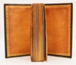 MOREL DE VINDÉ (Charles Gilbert). Zélomir. Paris, Didot l'ainé, 1801. In-12, maroquin bleu nuit à long grain, large dentelle dorée sur les plats, doublure de maroquin citron à long grain encadré de guirlandes dorées, garde de papier doré, dos très finement orné, tranches dorées (Simier). Illustrée de 6 figures hors-texte par Lefèvre, gravées par Godefroy. Quelques rousseurs, dos éclairci. Bel exemplaire à grandes marges dans une remarquable reliure doublée de René Simier, dit Simier Père « relieur du roi » (Cohen, 412).