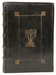 [PENITENT(S) BLEUS]. Heures des frères pénitens bleus fondez sous le titre de Nostre-Dame de Pitié en l'église des RR. Pères Carmes de la ville de Marseille. Marseille, Claude Garcin, 1674. In-4° de [22]-496 pages, maroquin noir, plats à la Du Seuil ornés au centre d'une Croix de la Passion, tranches dorées (reliure de l'époque). Titre gravé du livre « Le Sacre Zodiaque divisé en 12 mois » (Paris, 1610) placé au début, suivi de 9 belles gravures hors texte rajoutées. A la suite se trouvent 8 pages manuscrites détaillant la réception-questionnaire des « Novices qui se prézantent pour estre receus pour confrères dans la Compagnie des Fraires Pénitens bleus des Carmes de Marseille ».