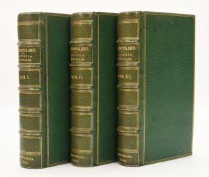 PLINE. Segundi historiae naturalis libri XXXVII. Lugduni Batavorum, ex officica Elzeviriana, 1635. 3 volumes in-16 de [24]-654-[18] ; 631-[17] ; 582-[18] pages, maroquin émeraude, filets dorés encadrant les plats, dos à nerfs orné, tranches dorées (reliure XIX°). L'un des plus jolis livres imprimés par les Elzeviers de Leyde, orné d'un beau titre allégorique gravé par Duysendt d'après Kouwenhorn et d'un portrait de Pline en médaillon. Nombreux renseignements irremplaçables sur la géographie, la zoologie et la botanique de l'Antiquité. Rousseurs éparses, petites taches sombres sur les plats sinon très bon exemplaire. (Willems 428).