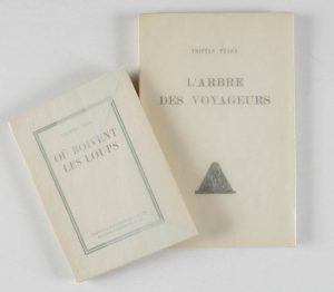 TZARA Tristan.L’arbre des voyageurs. Paris, Éditions de La Montagne, 1930. In-8, br. Édition originale. 1/400 sur alfa.Joint :- Où boivent les loups. Paris, Éditions des Cahiers Libres, 1932. Pt in-8, br. Édition originale. Ex. num. sur alfa.