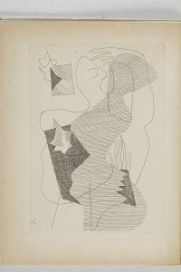 TZARA Tristan.Entre-temps. Avec une eau-forte et quatre dessins de Henri Laurens. Paris, Le calligraphe, 1946. In-4, br. Édition originale tirée à 356 ex. num. et signée par l’auteur et l’artiste.