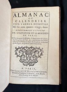 [ALMANACH] ou Calendrier pour l'année bissextile 1696. Paris chez Laurent d'Houry rue Saint-Jacques. In-8 plein veau, dos à nerfs ornés.