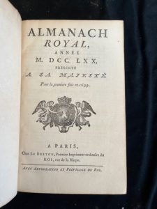 [ALMANACH] Almanach royal pour l'an MDCCLXX. Paris, chez Le breton rue de la Harpe. In-8 plein …
