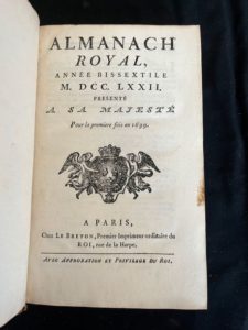 [ALMANACH] Almanach royal pour l'an bissextile MDCCLXXII. Paris, chez Le Breton rue de la Harpe. …