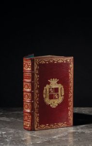 [ALMANACH] Almanach royal pour l'an MDCCLXXV. Paris, chez Le breton rue Hautefeuille. In-8 plein marocain rouge, dentelle et armes marquisales au centre, dos à nerfs ornés au petit fer de fleurs