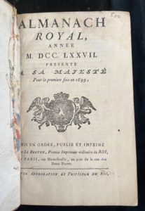 [ALMANACH] Almanach royal pour l'an MDCCLXXVII. Paris, chez Le Breton rue Hautefeuille. Fort In-8 …