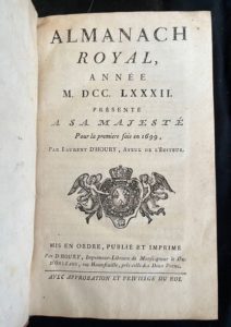 [ALMANACH] Almanach royal pour l'an MDCCLXXXII. Paris, chez d'Houry rue Hautefeuille. Fort In-8 …