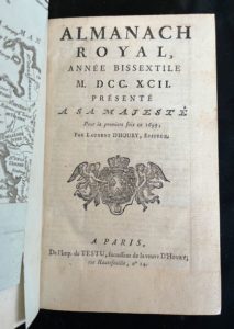 [ALMANACH] Almanach royal pour l'année bissextile MDCCXCII). Paris, chez de Testu successeur …