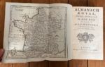 [ALMANACH] Almanach royal pour l'année bissextile MDCCXCII). Paris, chez de Testu successeur Veuve d'Houry rue Hautefeuille. Fort In-8 plein marocain rouge, triple filet d'encadrement fleurs de lys aux écoinçons, carte dépliante de la France en papier bleuté (gratté et manque pièce de titre)