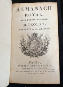 [ALMANACH] Almanach royal pour l'année bissextile 1820. Paris, chez M.-P.Guyot rue Hautefeuille. …