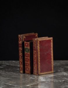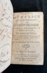 [ALMANACH] Almanach provincial et historique du Poitou pour l'année 1787. Poitiers, chez Barbier. In-12 plein marocain rouge, dentelle d'encadrement dos lisse orné au petit fer de fleurs. Joint : Nouvelle almanach encyclopédique 1772. Amsterdam et Paris chez Pillot. Plein marocain rouge, filet d'encadrement à la grenade dos au petit fer