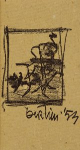 BERTINI Gianni.Pour parler (et pour cause). Édition du Castel rose (l’auteur), 1962. In-12, br. Édition originale tirée à 500 ex. sur papier de boucherie.Joint :- Une lithographie originale « Œdipe Roi », justifiée et signée 21/100.