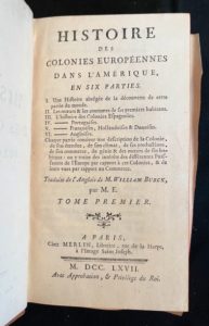 William BURCK Histoires des colonies européennes dans l'Amérique. Paris, chez Merlin 1767. In-8 deux volumes plein veau, dos à nerfs ornés